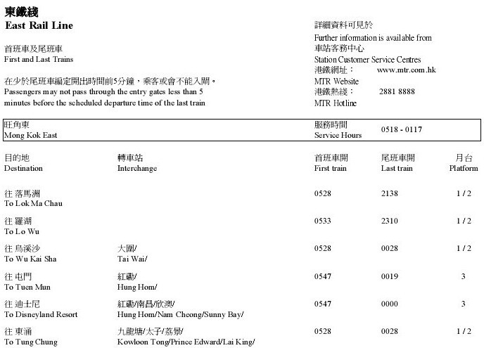 港铁时间表—罗湖