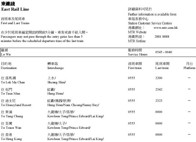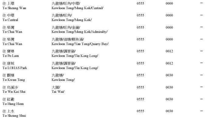 港铁时间表—旺角东