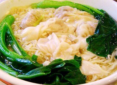 来源于广州,却大有后浪盖前浪之势。云吞的馅料以肥、瘦猪肉、鲜虾仁,加入大地鱼碎及蛋黄、调味混成。面条则是以面粉加上鸡蛋、碱水制成。云吞汤以猪骨、 大地鱼干、虾皮熬成。云吞一般是事先包好,到顾客下单时才煮熟。标准的云吞面做法是先把四、五颗云吞放在开水中焯熟,放到碗的底部。之后煮面,把面放到开水中煮数十秒煮熟后,放进冷水中「过冷河」,再放到云吞之上。最后加入热的云吞汤,放上少许切短的韭黄,面成。