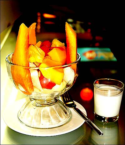 以生果,果汁和珍珠奶茶作主打,供应拾多款饭品、意粉、面、班戟、夹馅饼及沙律。而在食物方面,亦有一定的水准,鲜果捞所提供的果汁全部都选自新鲜水果,所推出的茶类全部来自台湾,质素比一般的茶店为高。