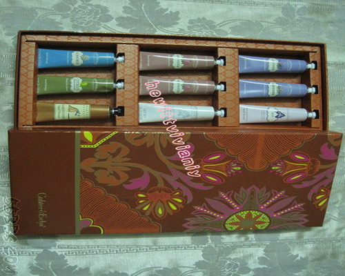 瑰珀翠护手霜圣诞礼盒套装 25g*9支 原价295元 特价208元盒 颜色有红色/橙色/紫色,礼盒套装内容不相同,就不一一拍出来了,就列下有什么东西吧,感觉有特价,真划算,包装那么漂亮,送人自用都不错,我得它家的手霜排名是第三,茱莉第一,欧舒丹第二,但是这个排名第三的性价比高,准备败手霜的姐妹们可以考虑这个牌子哦