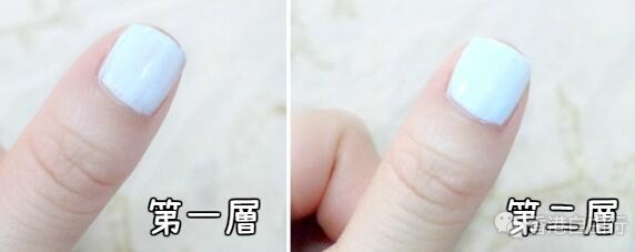 它的刷毛挺柔软,而且较细,可以搽到边边位。指甲油的显色度都不错。搽第一层颜色就不太均匀,第二层已经完全实色,而且都好快干。