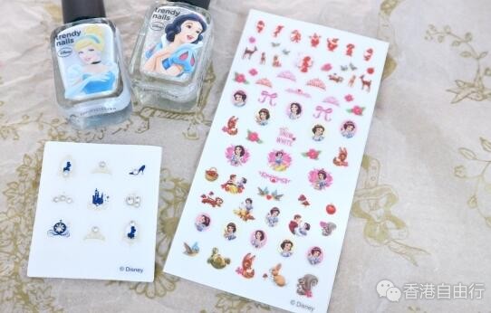指甲贴纸就很够方便了,搽完底色之后一贴上去就完成了,图案还好好用呢!我尤其喜欢灰姑娘的指甲贴纸,真是好有仙气!