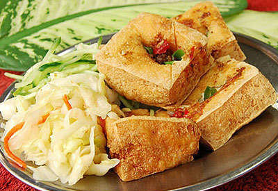 本来是浙江绍兴的传统小食,在上海一带处处可见。臭豆腐之所以奇臭无比,全靠把厚豆腐连「臭卤」(发酵液)及水分,放入密不透气的容器内发酵而成。