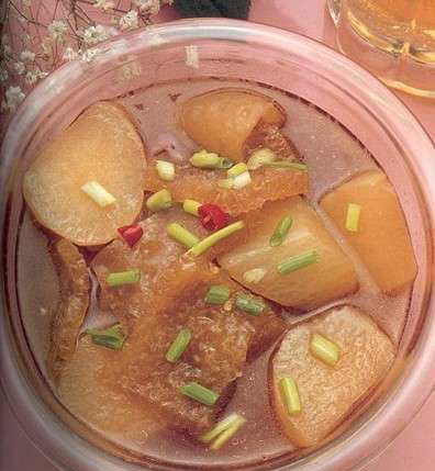 猪皮萝卜是五十年代街头哪喳面的传统 。五十年代香港经济未起飞,哪喳面一毫子有交易,又平又饱肚,大受工厂妹欢迎。