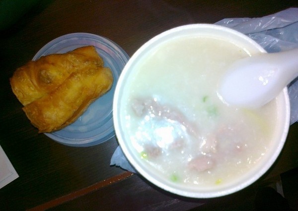 5、南洋酒店旁边100米距离有个粥店,名字貌似是什么“知足常乐”之类,里面的粥很赞,我点的双拼粥,是滑牛肉片粥29HK$,加上一根油条(香港当地貌似叫油器)7HK$,特别好吃的说!如果住在南洋一定要来尝尝哦~~