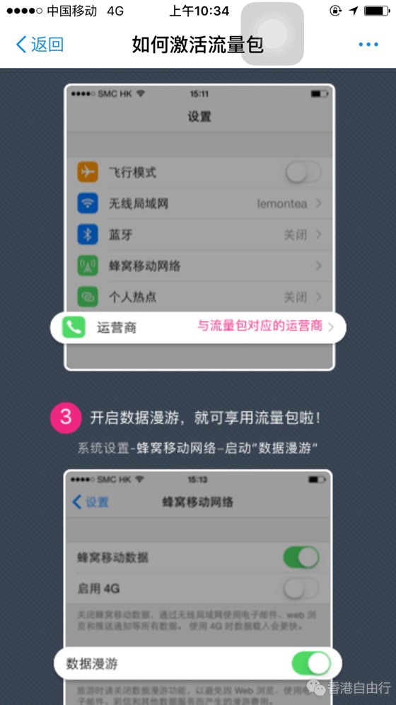顺利登船,坐好后用手机购买了8元的“境外流量包”1天香港200M开通操作如下: