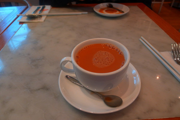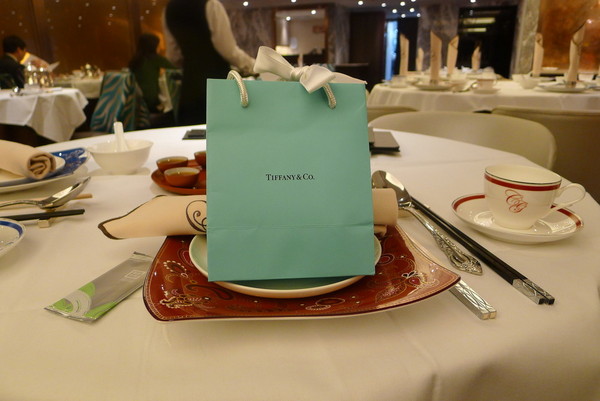 在金融大厦里面的早茶,,邻座一个短发女士和一个男士聊工作,姿态很优雅。