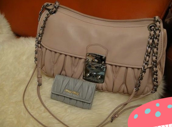 另外购MIUMIU粉色包一个,12500HKD, 小羊皮配同款蓝灰色钥匙包