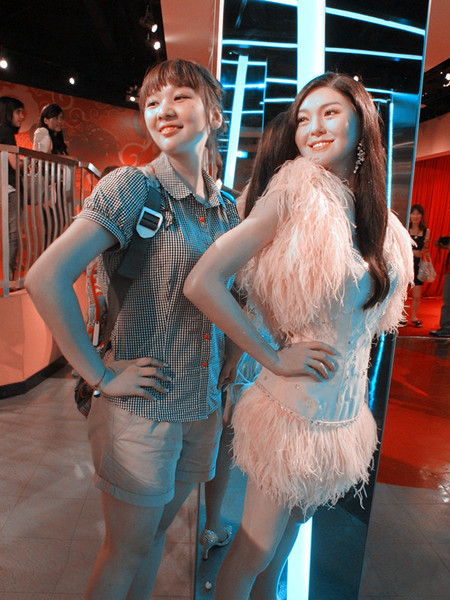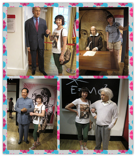 第二天,9点出发~我准备的路线是去海洋公园,看着网上的攻略坐几个站,香港的地铁非常方便,路痴也能找到,10分钟不到,就到了坐海洋公园的车,是双层车,运气好,我坐的上面的第一排。经过几条路道,来到海洋公园,天气非常热,有35度,绝对不影响我的心情,进了公园里,合影拍照,先去游览了山上的项目,特喜欢的是热带雨林和水母馆,去看过的人才知道美妙,在山上玩了几个小时,就去山下看看,因为海洋馆在山下,坐着缆车来到山下,看了看我们的国宝熊猫馆,还有鳄鱼等,最后逛海洋馆,海洋馆真的很大,里面的水都是海水,特神奇的是通过窗户看见里面的鲨鱼,海洋馆的里面的结构非常特别,必须去过才能体会,走几步就是一面大玻璃,后面就有许多鱼,看着真是美。出了海洋馆就是下午3点,行程还没结束,下个目的地是去蜡像馆,到了蜡像馆才发现,第一个想到的就是 这么多人,好在,我在网上买了门票,可以不用排队买门票,但是还要排队坐缆车,等了半个小时,终于等到了,坐上缆车,山上的风景真漂亮,整个香港尽收眼底。先去看蜡像馆,进门是成龙,但照相要收费,鄙视ing!后面的蜡像都不需要收费了,想照就照,最喜欢的是玛丽莲梦露,还有假裙子和假发让你自己带呢,逛了蜡像馆出来是吃晚饭了,晚饭我也在网上预定的,西餐厅,去吃了些东西,顺便看了看风景,还好吃得早,外面的人已经等了很多了,吃完后,去太平山顶看夜景,我发现好位置几乎被人抢光了,好不容易站了一个稍微好的地势,也是看前面人的头。夜幕降临,香港的夜景全部展现出来,拿出自己的手机拍拍拍,下山坐缆车也是排长队,下山之后,转了一个地铁就到尖沙咀,又继续逛,一直到10点才回到酒店,虽然天天都在吃小吃,并未长胖,每天走这么多路,长胖是不可能的,踏实的睡上一觉,准备明天的shopping!