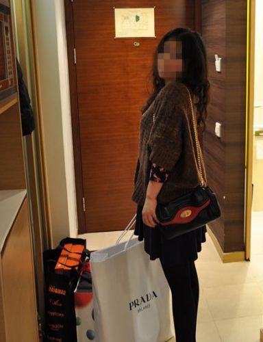 话说我春节前去了趟武清的佛罗伦萨小镇,在PRADA折扣店看上一款降落伞布的包包,样式跟这个差不多,价格是6K9,LZ当时犹豫半天,最后觉得有点不值没买。这次在海怡的PRADA店终于买到了同款真皮包包,觉得价格比较划算,现场好多韩国MM都在扫货,LZ赶紧扫了一个走人价格HKD8500.