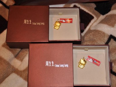 帮美女同事带的周生生KITTY款。也是提前在网上找了个打折卡号,打了95折,能省一点是一点