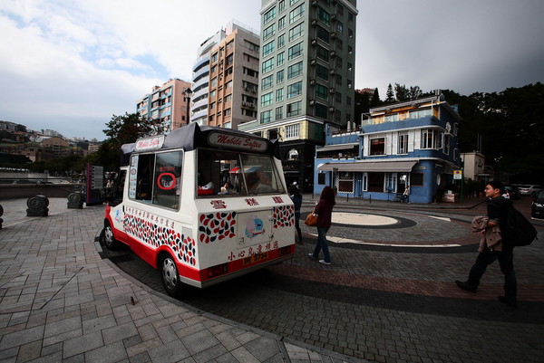 穿过赤柱集市,来到海边,一辆冰激凌车悠闲地停在岸边公路上,放着舒缓的儿歌。