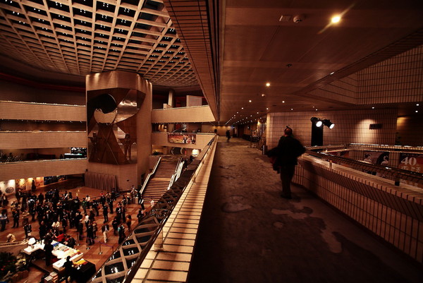 香港这边的公共场所比如说这个音乐厅灯光开得较暗,并且为暖黄色,给人一种高雅朴素之感。