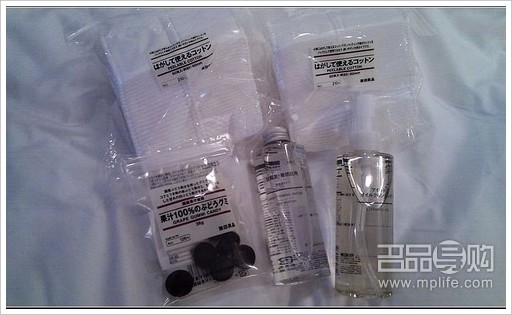 MUJI:高保湿水 65;化妆棉 20;果汁糖 12;卸妆油 78