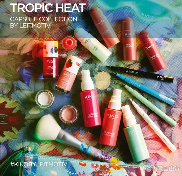 为庆祝KIKO品牌20周年 ,来自意大利时装界Leitmotiv品牌的新晋设计师Juan Caro 及Fabio Sasso以花朵及鲜果的缤纷色彩融入产品设计上,创造出Tropic Heat - 充满色彩、活力与玩味的彩妆系列。