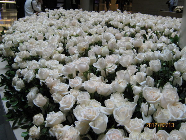 香港商场里的白玫瑰装饰