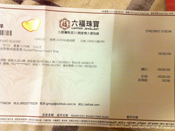 晚上路过六福买了点金子~~~~没废话 直接手工费6折 黄金合人民币390多~划算的 铂金戒指给我老公的 也很便宜