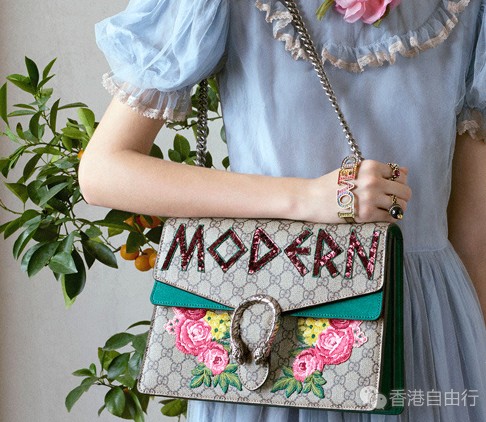 来自古驰花园的缤纷花卉似无数充满生命力的动人故事,诉说着关于爱情的美好愿景。融入了多种浪漫元素的全新花朵图腾,以别样的设计风格构画出品牌美学标识。作为大自然最美丽的代名词,花卉被赋予了各种带有情感意味的象征词汇,强烈的情感表达与多彩的迷人形象交织在一起,用满目繁花来诉说对浪漫的渴求。米开理情有独钟的西辛赫斯特城堡宛如一座盛放了万千故事的梦幻花园。同花园一样令人陶醉的还有隐藏其中不为人知,似蔷薇般温柔又炽热的爱情,两颗执着于艺术的心互相抚慰,激扬的文字凝结成她们对彼此的倾慕。而呈现于古驰经典包袋上的蔷薇刺绣图案,似正值花季怒放出旺盛的生命力,映照出缱绻的感情世界;与酒神的金属虎头搭扣组合在一起,既有刚柔并济的和谐之美,又于温柔中凸显当代女性对于爱情的追求。与Sylvie的精美织带搭配在一起,给优雅的少女气息平添一份自信迷人的独特魅力。