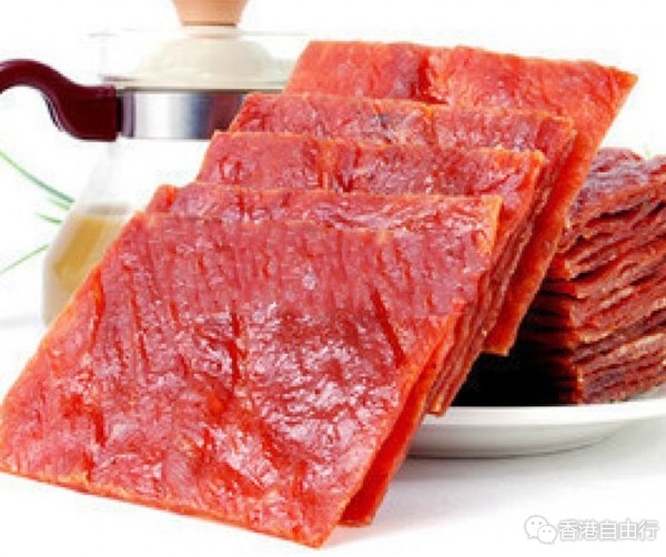 猪肉铺是澳门最正宗的伴手礼之一,选用的是新鲜猪肉后腿部分,剔去皮、膘、筋骨,取其整块纯瘦肉为基本原料,剖成薄片,配以白糖、味精、特级鱼露、鸡蛋等几十种佐料涂在肉片上,再将肉片平摊在一种特制的筛匾里烘烤而成,非常好吃。