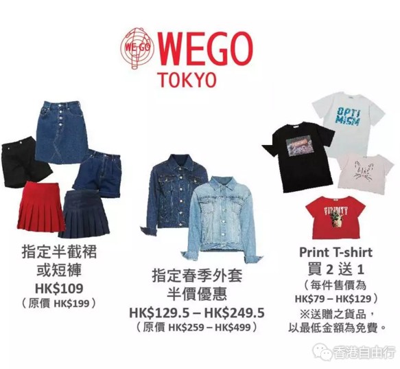 对于任何类型的女生,T恤一定适用,绝不会买错。这次WEGO TOKYO有多款T恤进行买2送1优惠,以每件售价由$79-$129买叁件来说,最抵平均$52.6就有一件!如果一个人嫌买3件太多,大可以跟朋友一起开心share。