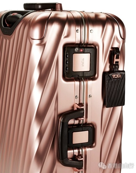 基于TUMI 19 Degree系列银色和黑色款型的基本配置,TUMI 19 Degree春季限量玫瑰金款更以加固的外壳设计为亮点——登机箱设有两个锁扣,而旅行拉杆箱则设有三个锁扣,并配以工艺独特的四角模压铸角套,以贴心稳固的设计提供额外的保护。内饰精致且具有设计美感,展示出极致美学和有条不紊的特质,其中细致的钻石纹压缝衬里,更与造型独特的流线外型配合得天衣无缝。