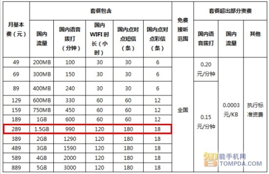 三年期289元套餐