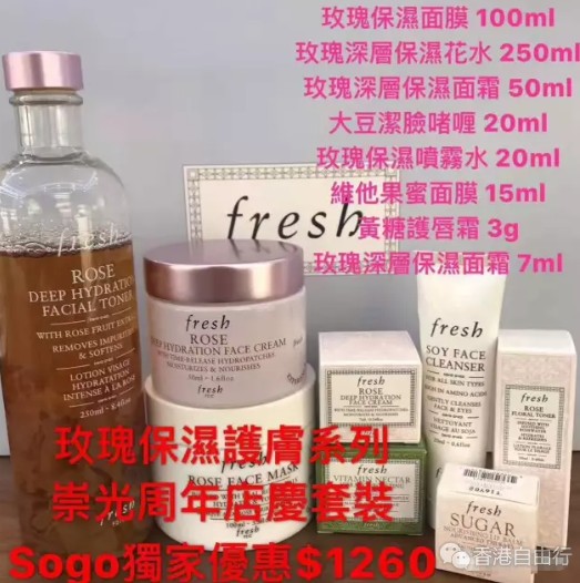 Fresh馥蕾诗家的产品,一直以天然、无刺激、孕妇可用为大众所熟知,崇光店庆Fresh 早已为大家准备了多款独家节日套装及购物优惠,令人期待的 Fresh 5款精选皇牌面膜限量套装,万勿错过!