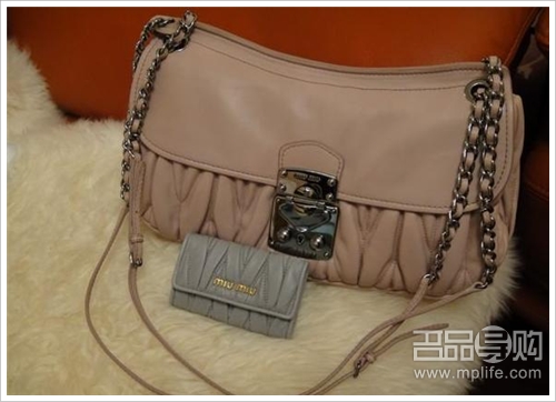 另外购MIUMIU粉色包一个 小羊皮配同款蓝灰色钥匙包