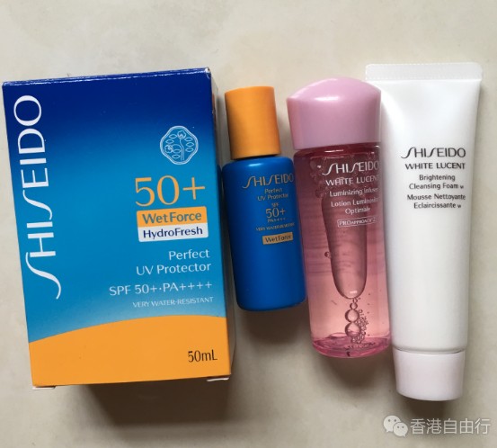 资生堂全方位防护防晒霜套装340港币,还是蛮划算的,一楼有资生堂,人超级多,不小心看到负一楼有一家,我就去下面买的,人不多,都不用排队,真是明智呀;