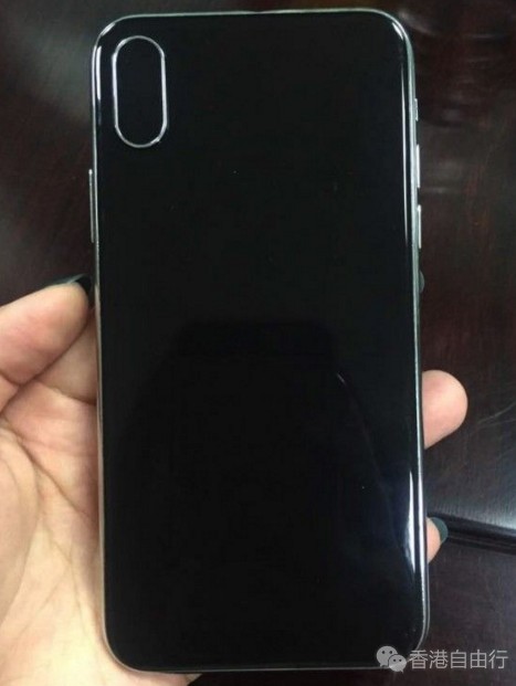样机背部摄像头的摆放与iPhone 7 Plus相同。据传言,背部会搭配双镜头的摄像系统、LED闪灯和麦克风。摄像头的像素和7 Plus相同,但是不排除苹果公司可能会宣布新的AR功能。新款的机型不会有3.5mm的耳机接口。