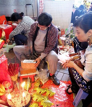 3月5日,中国传统节气“惊蛰”,在香港鹅颈桥下“神婆”们生意兴隆,不少市民按习俗光顾“打小人”。打小人是一种流行于香港的一种民间习俗,用以宣泄内心的各种情绪不满。“打小人”更被香港民政事务局初步列为63项“非物质文化遗产”之一。中新社发 洪少葵 摄