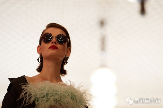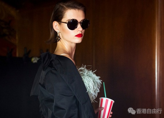 如 Prada 女孩 Giedre Dukauskaite戴上一副新的太阳眼镜,直视着耀眼高空,在城市任意地前行,转念间闯进电影院,穿梭在剧场房间,仿佛在寻找什么,气氛神秘而又轻快俏皮。这些画面来自 Prada 全新 Cinéma 太阳眼镜的宣传短片,以米兰一日的简单小故事,向电影当中的奇思妙想致敬。Cinéma 太阳眼镜呈现浑圆的轮廓,镜框上半部分和鼻梁选用金属连接,渐变色镜片透出深不可测的有色视界。