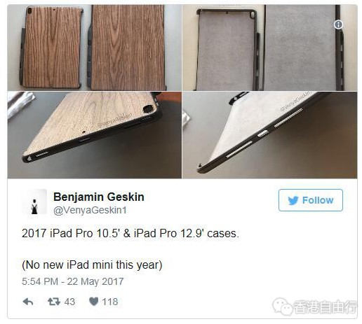 虽然不能像iPhone 8一样采用无Home键和无边框设计有些让人失望,但是Geskin同时也曝光了一些关于新一代iPad Pro的更多消息,包括10.5英寸和12.9英寸两个版本。