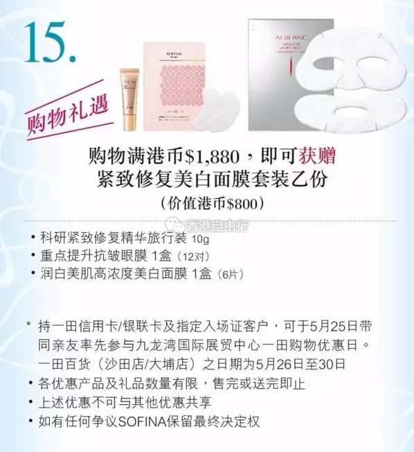 继崇光感谢周年庆后,5月压轴优惠一田购物优惠日来了!由5月26日至30日期间,一田百货沙田店及大埔店SOFINA美容专柜将推出多款护肤美妆优惠组合,惊喜限定优惠不容错过~