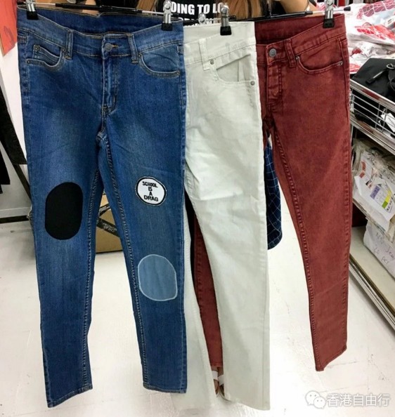 场内最入的位置放满不同牌子的牛仔裤,产品会依尺码排好,几方便。