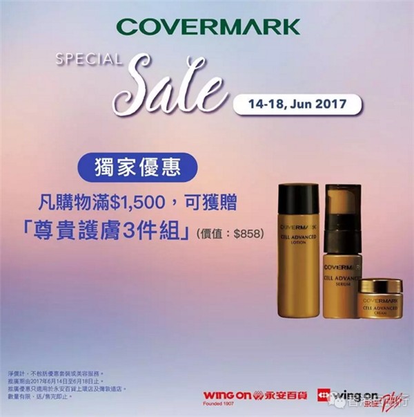 优惠只限Covermark 永安百货(上环店及弥敦道店)专柜。