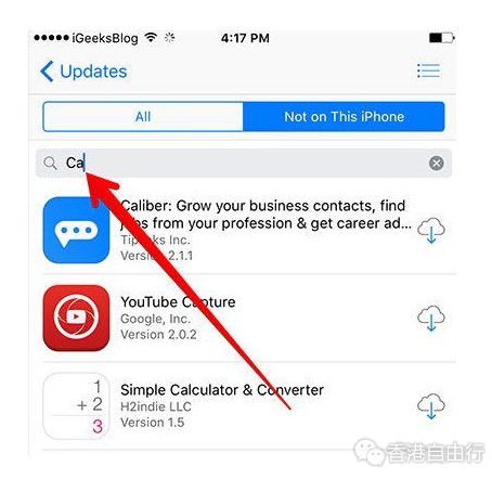 在 App Store 的已购买版块中,用户可以向下轻扫调出搜索栏,一边快速从已购买应用清单中找到某款应用。如果用户购买的应用数量很多的话,他们会特别需要这个功能来帮助快速找到应用。可惜在 iOS 11 中苹果不再提供这个功能,在新的 App Store 中用户并没有发现这个搜索栏。
