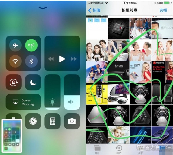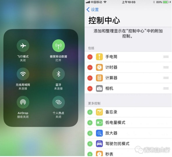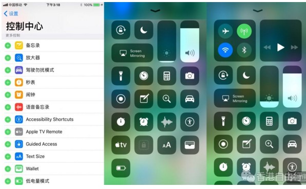 控制中心在 iOS 11 中经过了重大的重新设计,现在支持定制快速访问各种常用开关,占据的空间更大,但更加方便,将大量快捷功能按照多区域划分,3D Touch 在这里也得到了进一步延伸。不过,国人最关心的还是打开或关闭蜂窝移动数据的选项,3D touch 重按或长按第一个框即可看到,这一功能好多非 iOS 平台的手机已经原生实现,而且 iOS 用户诉求已久,具体就不多说了。