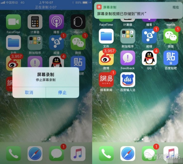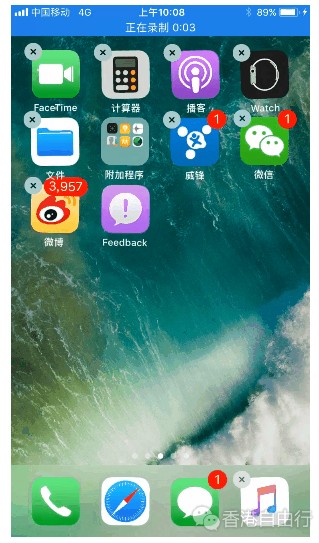 需要注意的是,这个录制屏幕功能真的有点太简单了,缺陷也还是有的,因为在点击录制那一刻起到结束录制的瞬间,屏幕上的一切都会捕捉下来。如果你想让录制的视频看起来更干净一些,自己可以到相册中将视频开头和结尾不需要的镜头剪掉,但是蓝色顶部的录制信息条去不掉。