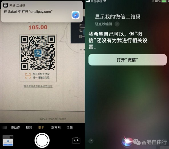 苹果在从 iOS 10 开始就开放 Siri 让第三方应用可整合 Siri,iOS 11 则将 Siri 支持扩展到了更多类别,包括待办事项、备忘录、提醒事项、显示二维码的 app 等。现在你对着 Siri 说“扫描二维码”,摄像头便会立即启动。