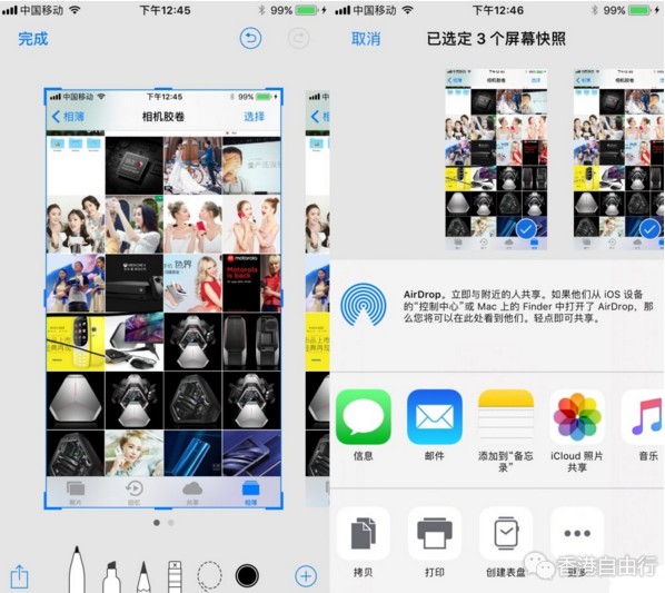 全新的 iOS 11 中,截图做了人性化的改进,不用像之前那样进入相册才能编辑截图了。只要截完图在屏幕左下底部立马出现缩略图(稍等会自动消失),只要点击缩略图就能开始用系统自带编辑功能进行编辑了,包括裁剪、划线、标注等,非常方便。而且如果一次截了很多图,在编辑界面也会显示出多张截图平铺等待编辑,而不是编辑完第一张还要去相册找第二张,确实更加人性化了。