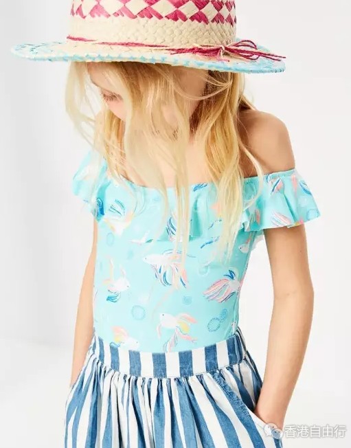 荷叶边饰金鱼印花泳衣