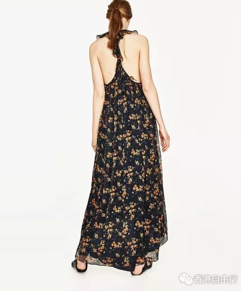 荷叶边饰绕颈吊带洋装
