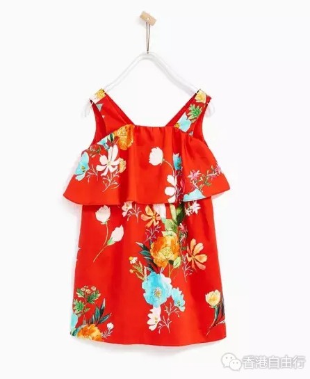 荷叶边层迭花卉洋装