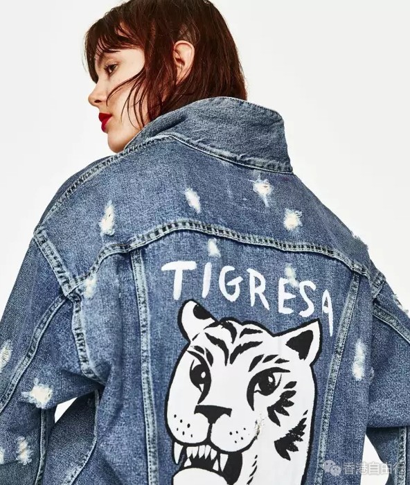 老虎图案宽松版牛仔外套