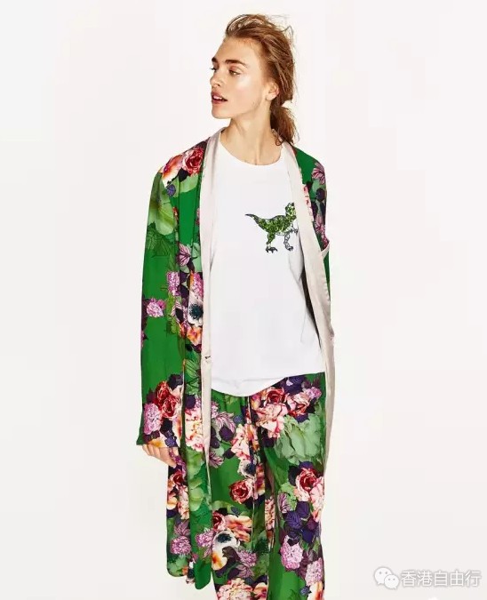 花卉印花宽版和服式外套