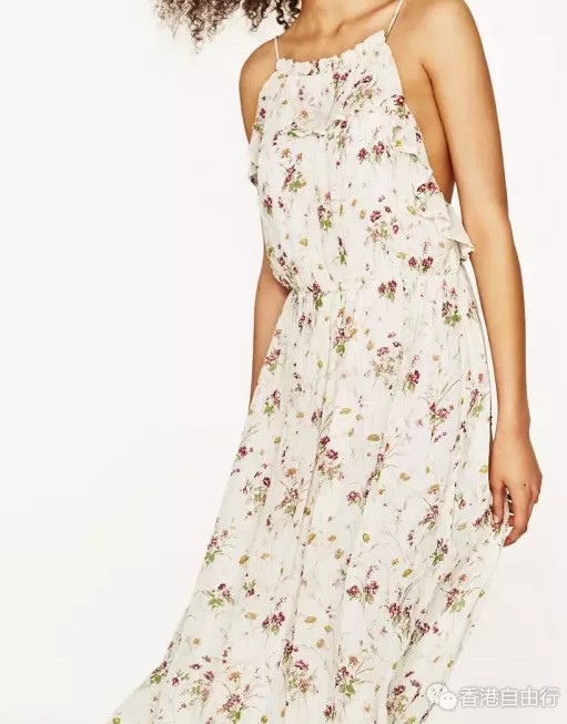 荷叶边吊带长版洋装