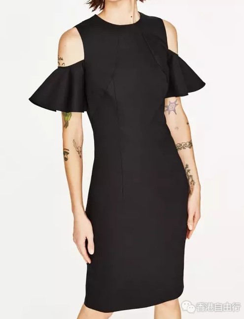 不对称袖洋装