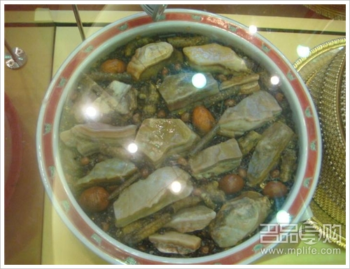 在信德中心的中间位置有一个石头宴,很有意思,大家看看能不能看出这些美味佳肴是石头“做”成的